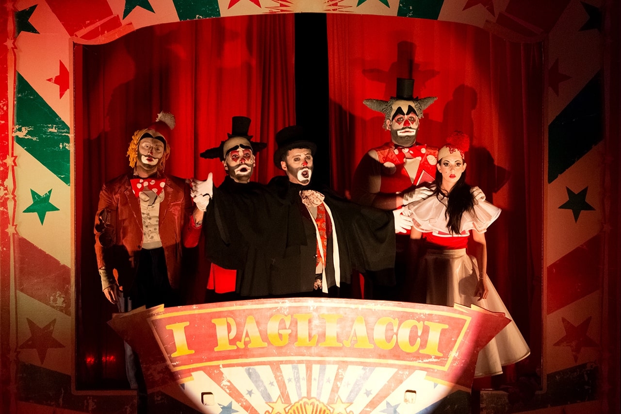 Η όπερα Παλιάτσοι πραγματεύεται την τραγική ιστορία του επικεφαλής ενός περιπλανώμενου θιάσου της κομέντια ντελ άρτε. Ο παλιάτσος Κάνιο πρέπει να κάνει το κοινό του να γελάσει, αν και έχει μόλις πληροφορηθεί για την απιστία της κολομπίνας, την οποία υποδύεται η γυναίκα του, Νέντα. «Ridi Pagliaccio!» τραγουδά στην σπαρακτική του άρια λίγο πριν η όμορφη και ζωηρή κολομπίνα βρεθεί αντιμέτωπη με την παράφορη ζήλεια του. Τα όρια ανάμεσα στη μυθοπλασία και στην πραγματικότητα αρχίζουν να θολώνουν. Ο εξαγριωμένος και απατημένος παλιάτσος μαχαιρώνει την άπιστη γυναίκα του και τον εραστή της πάνω στη σκηνή. Συγκλονισμένος αναφωνεί στο ακροατήριο «La commedia è finita!» - "Η παράσταση τελείωσε!".