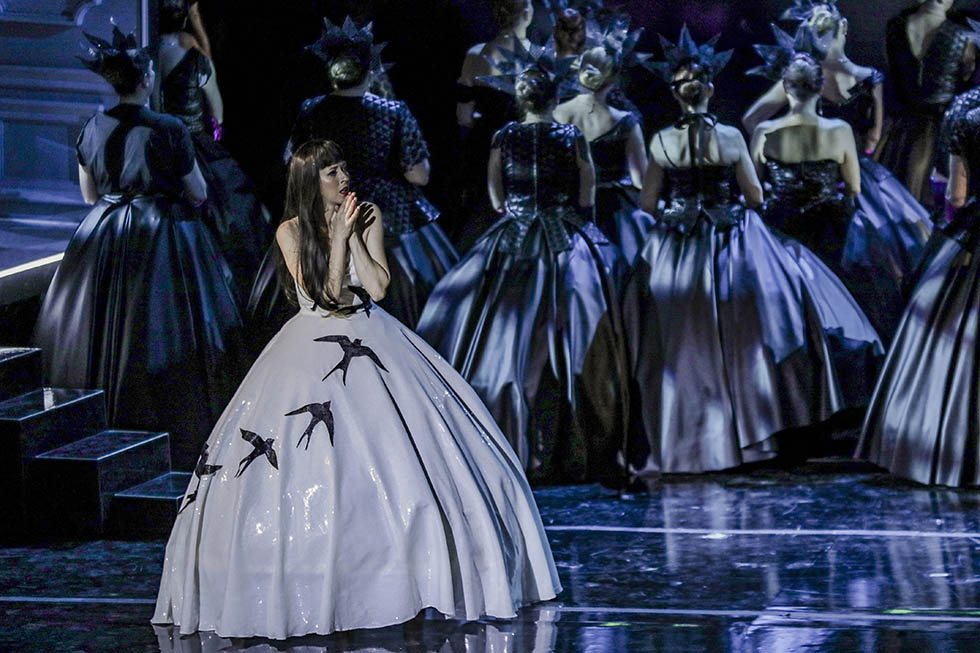 In line with the spirit of Verdi’s enrapturing music, Rigos marks his stamp on a direction that focuses on the “forced pleasure” which seems to suffocate all the protagonists of the story, as well as the smothering effect of economic transactions that defines everything in the lives of the characters. A psychological profile of Violetta Valéry, from the dawn of love to the darkness of death, set in a “minimal” baroque environment.